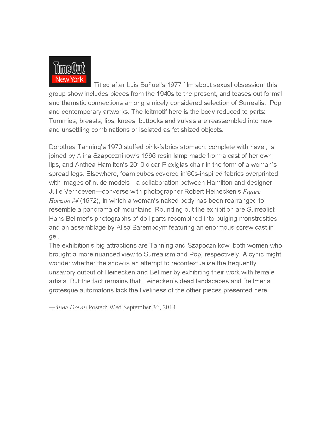 Anne Doran , Time Out New York , September 3, 2014 Download